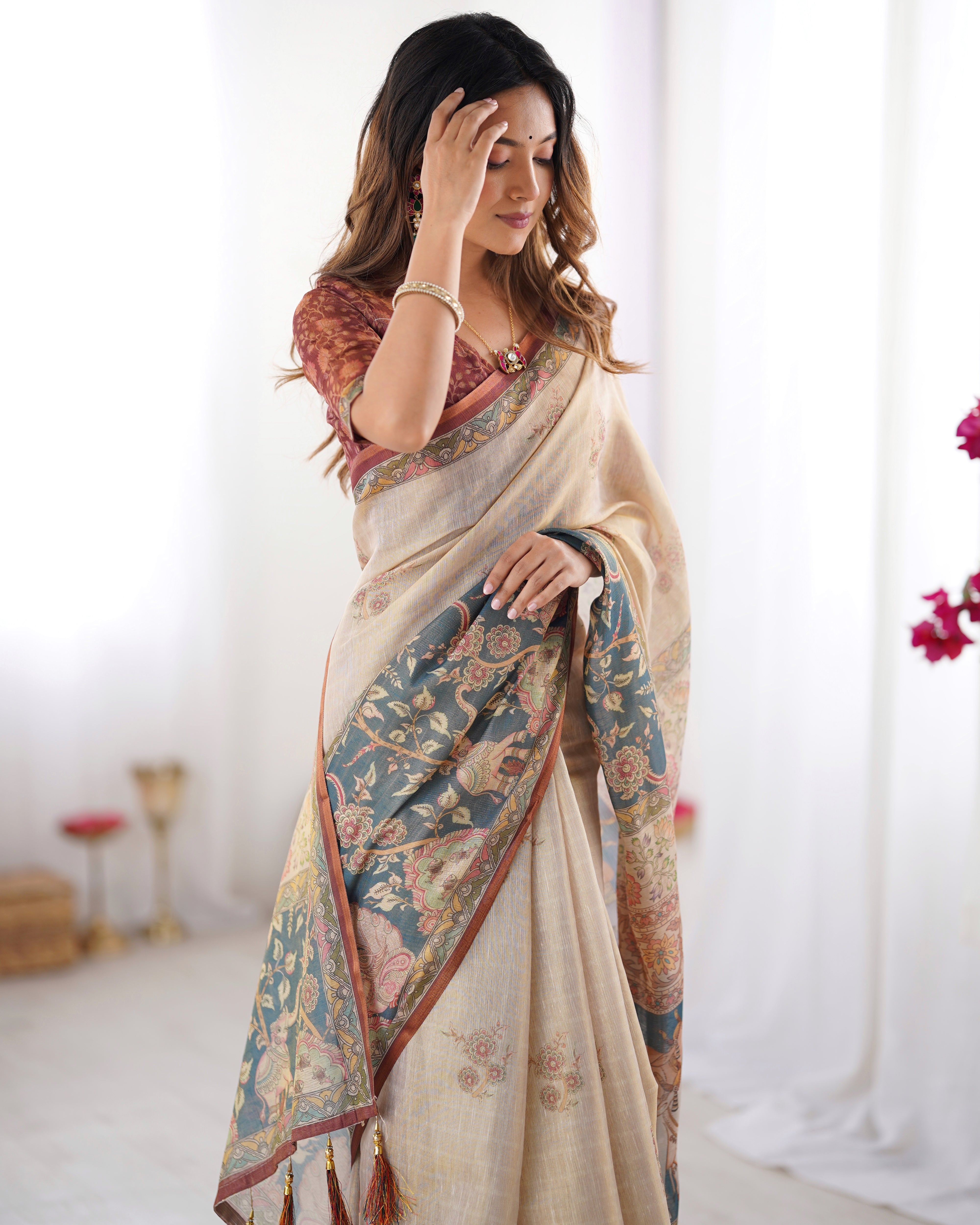 Perfect for festive events, traditional ceremonies, weddings, and cultural gatherings, this saree is ideal for those who want to wear elegance with a touch of storytelling.