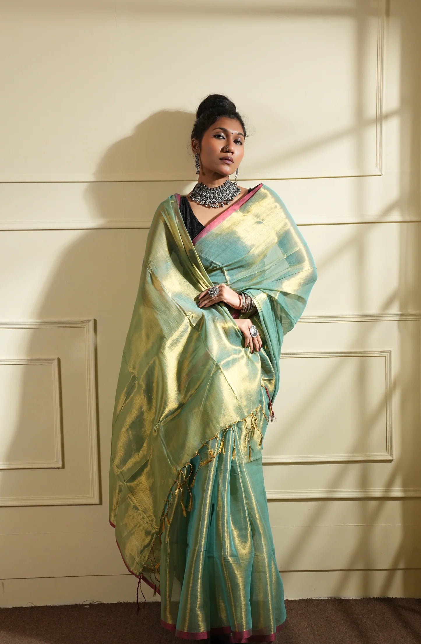 Introducing the Raga Tissue Saree: A perfect blend of tradition and modernity. This lightweight, elegant saree showcases India's rich heritage and craftsmanship, making it an ideal choice for any occasion where tradition meets contemporary style.