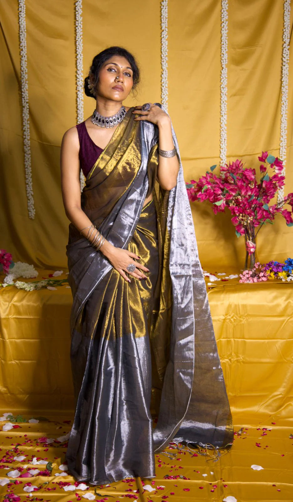 Introducing the Raga Tissue Saree: A perfect blend of tradition and modernity. This lightweight, elegant saree showcases India's rich heritage and craftsmanship, making it an ideal choice for any occasion where tradition meets contemporary style.