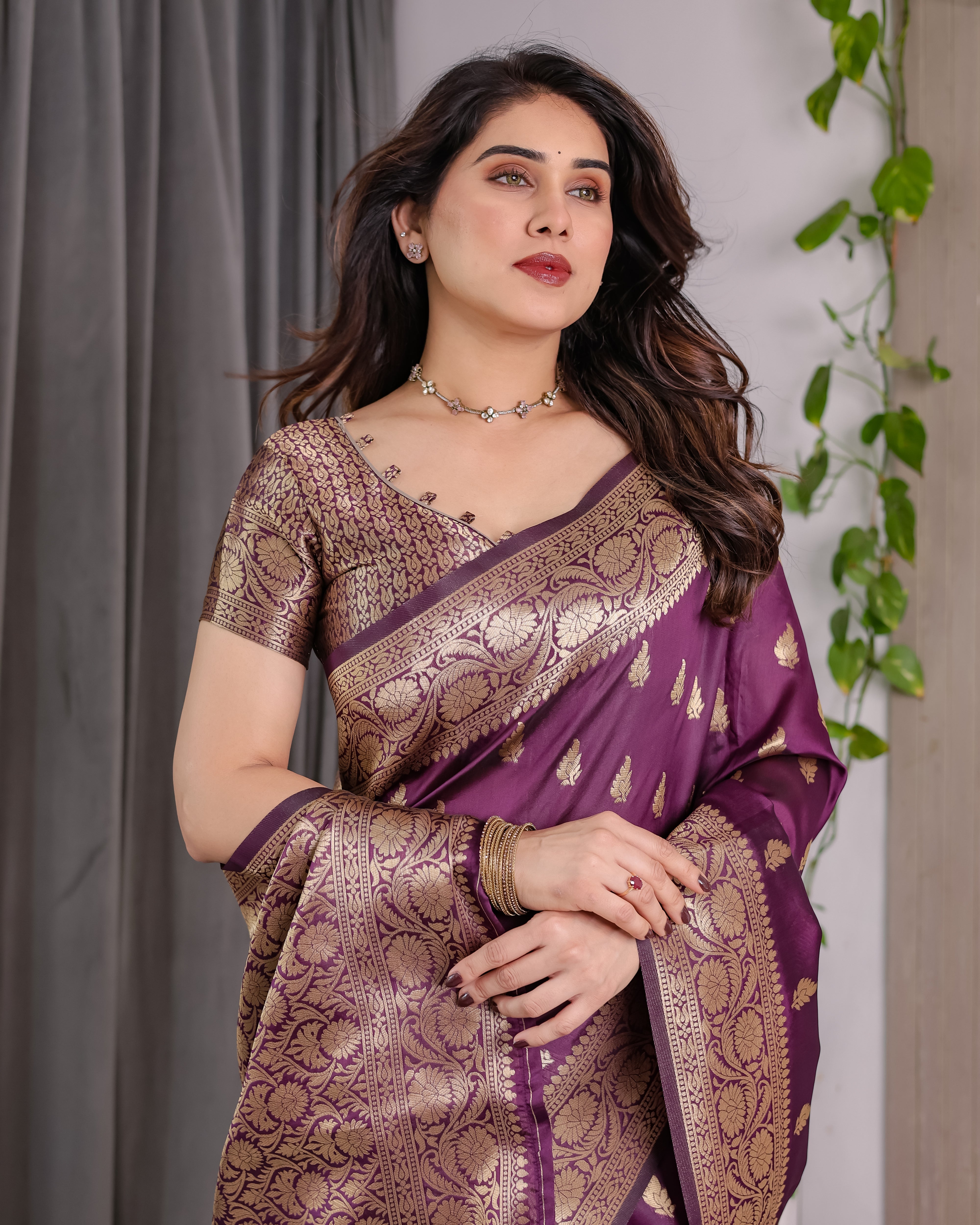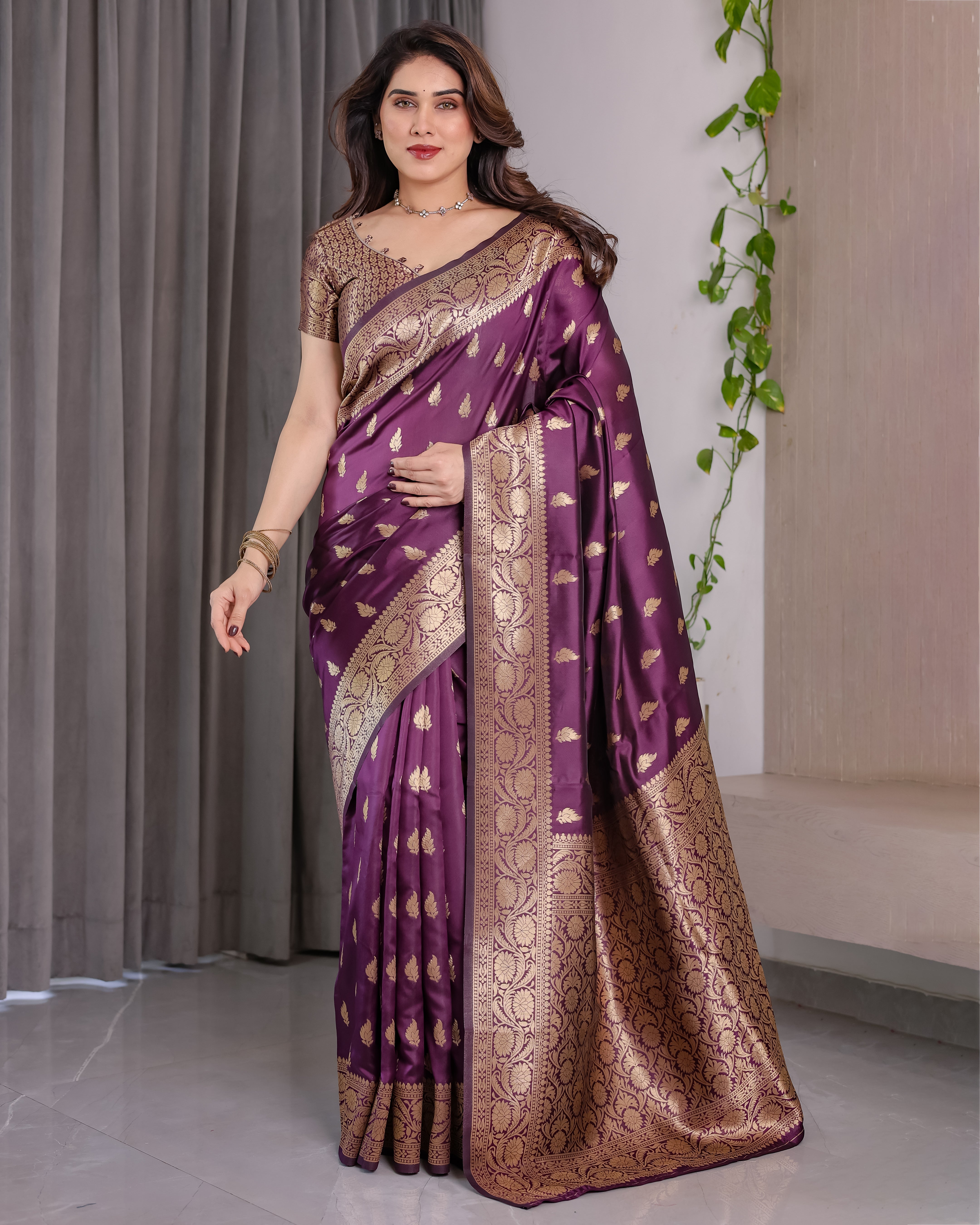 Color: Royal Violet with Antique Gold Zari
