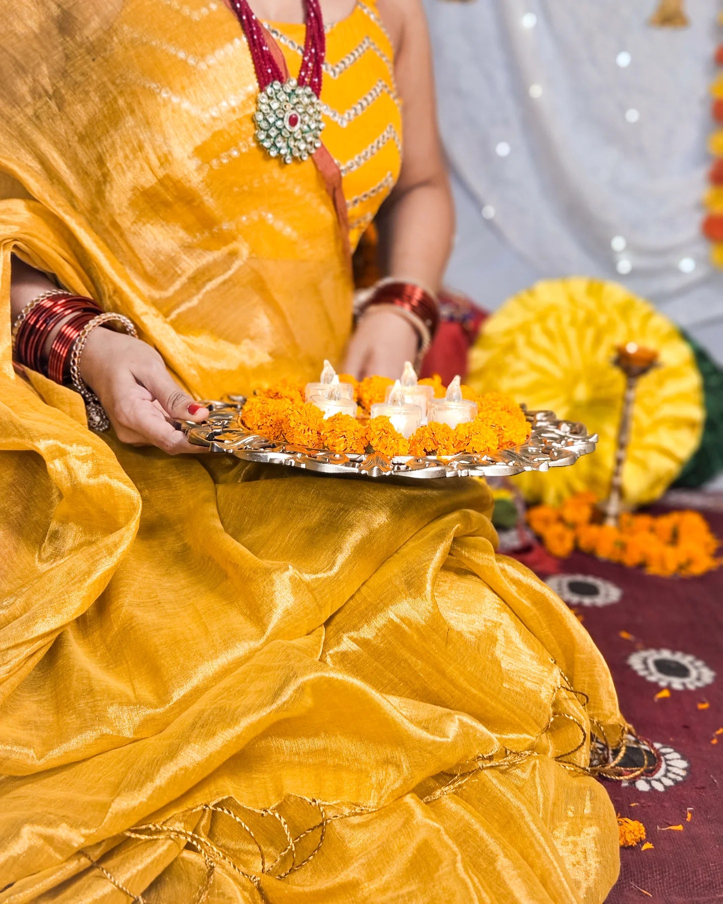 Introducing the Raga Tissue Saree: A perfect blend of tradition and modernity. This lightweight, elegant saree showcases India's rich heritage and craftsmanship, making it an ideal choice for any occasion where tradition meets contemporary style.