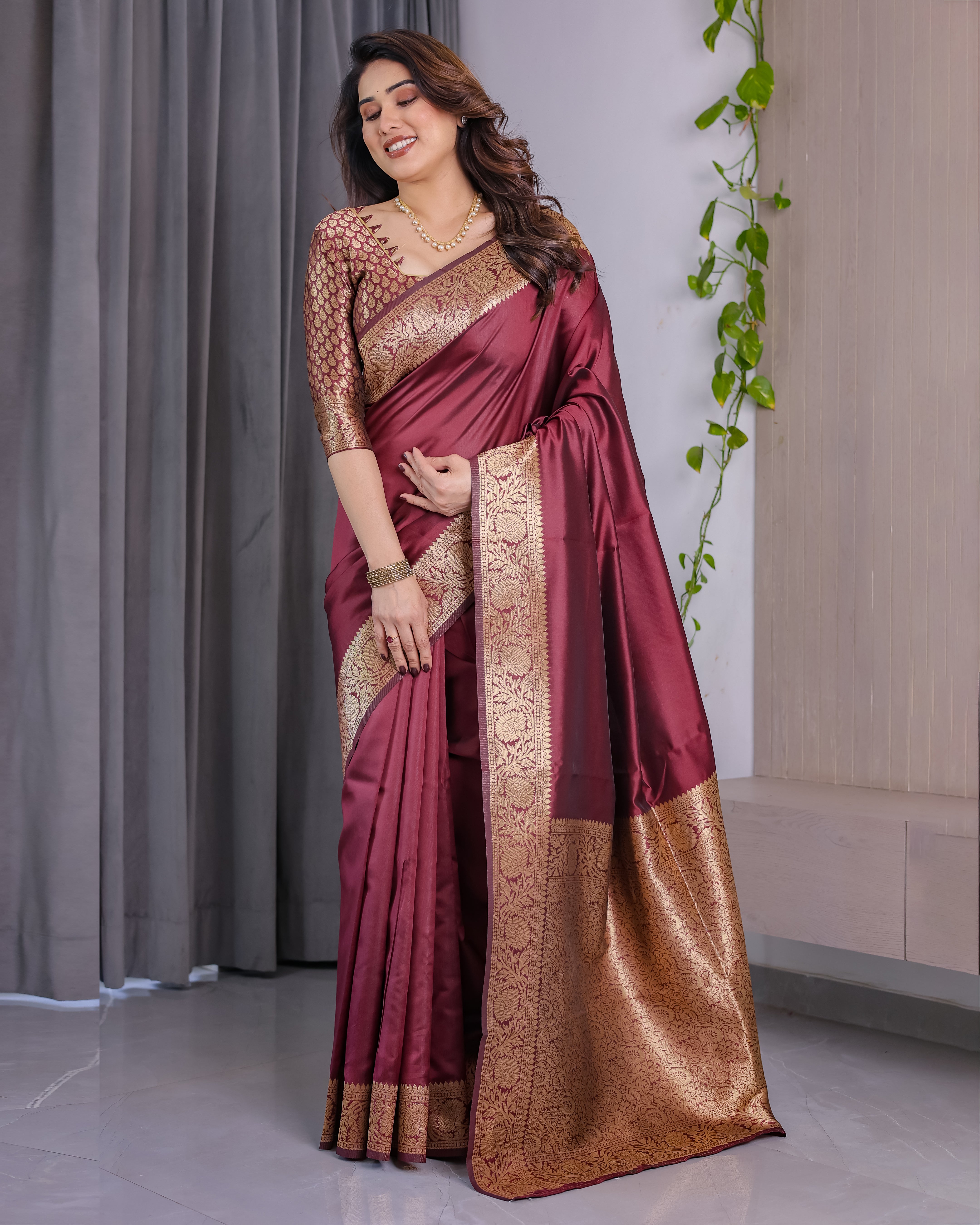 Color: Wine Maroon with Golden Zari